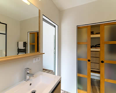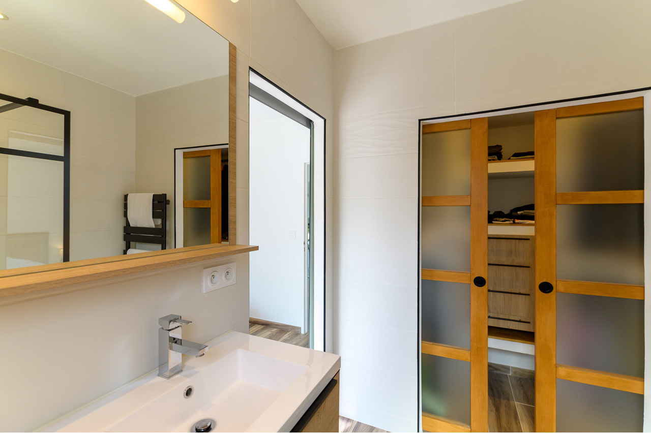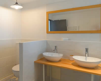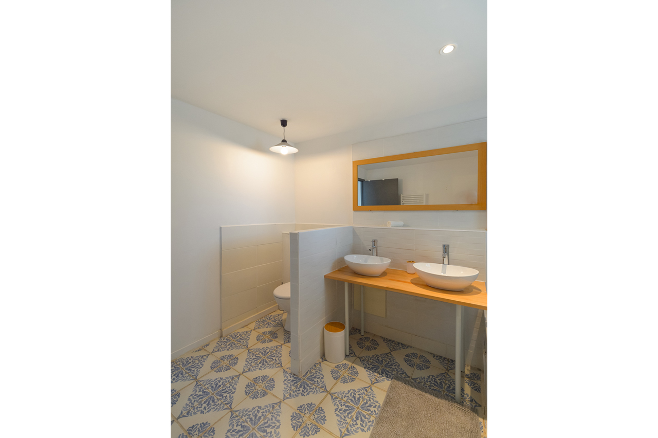 Une salle d’eau au rez-de-chaussée et une salle de bain à l’étage.